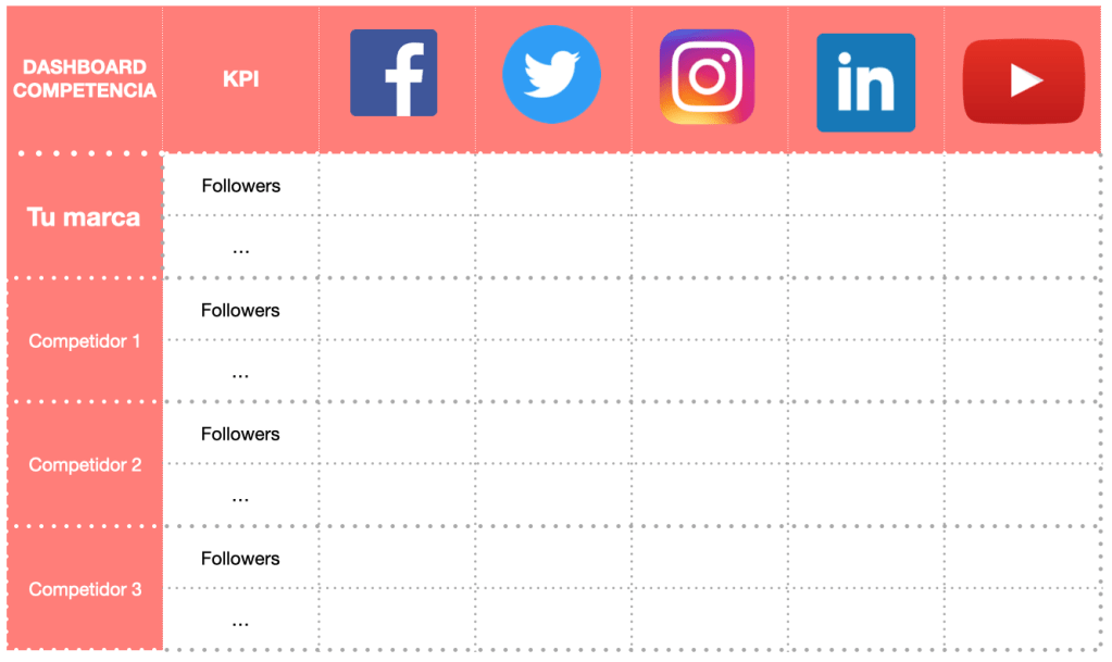 En este Dashboard puedes incluir a los 3 principales players de la competencia para ver cómo van evolucionando ellos en el mismo período de tiempo que tú (los datos públicos que tengas disponibles, claro) y comparar.
